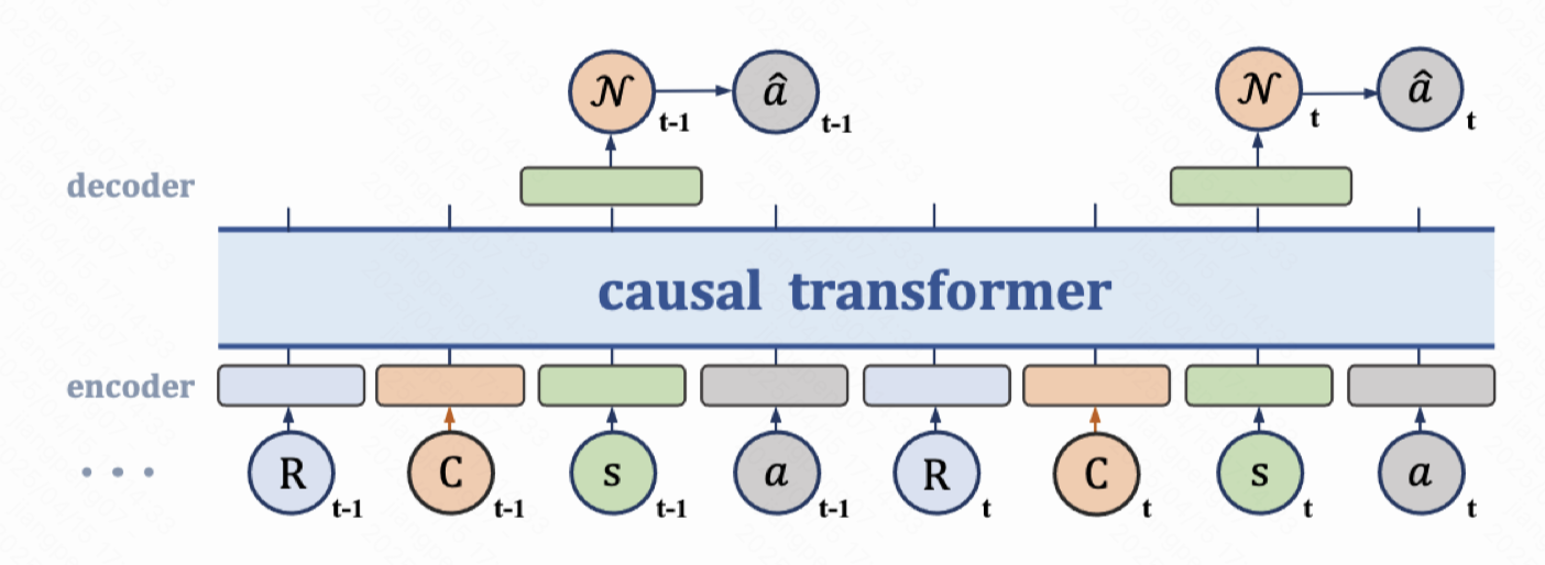 DT 应用于出价策略(如图 1):其机制类似于大语言模型中的“下一词预测”(Next Token Prediction)。模型依据历史状态、调价动作与奖励序列,预测能够最大化序列整体价值的最佳出价动作。可类比为让模型学习大量优质出价案例,进而根据当前上下文推断出最合理的后续动作。