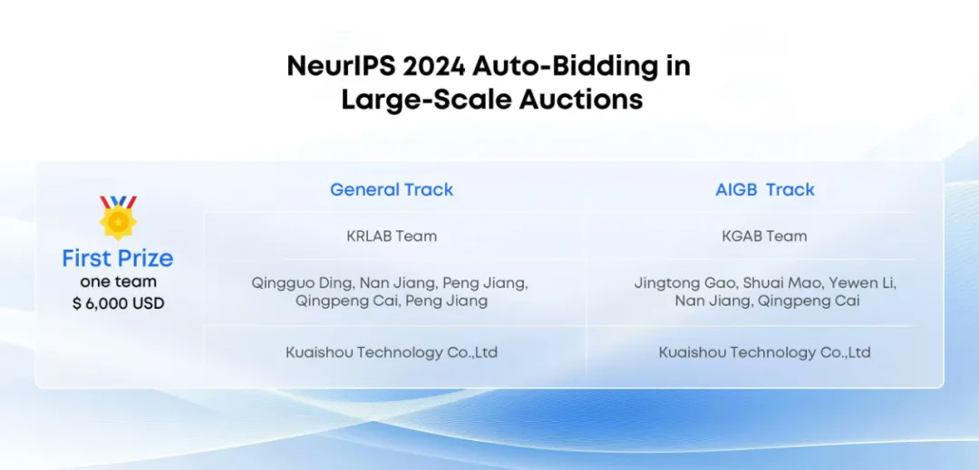 2024 年,团队在 NeurIPS 大规模广告自动出价竞赛中斩获双赛道冠军,充分体现了其在人工智能领域的核心实力。2025 年,团队首次提出并全面落地生成式强化学习出价技术,通过有机融合生成模型与强化学习,显著提升快手广告收入。其所研发的 GAVE、CBD 等出价算法已成为该领域的 SOTA 算法,受到业界的广泛关注与应用参考。