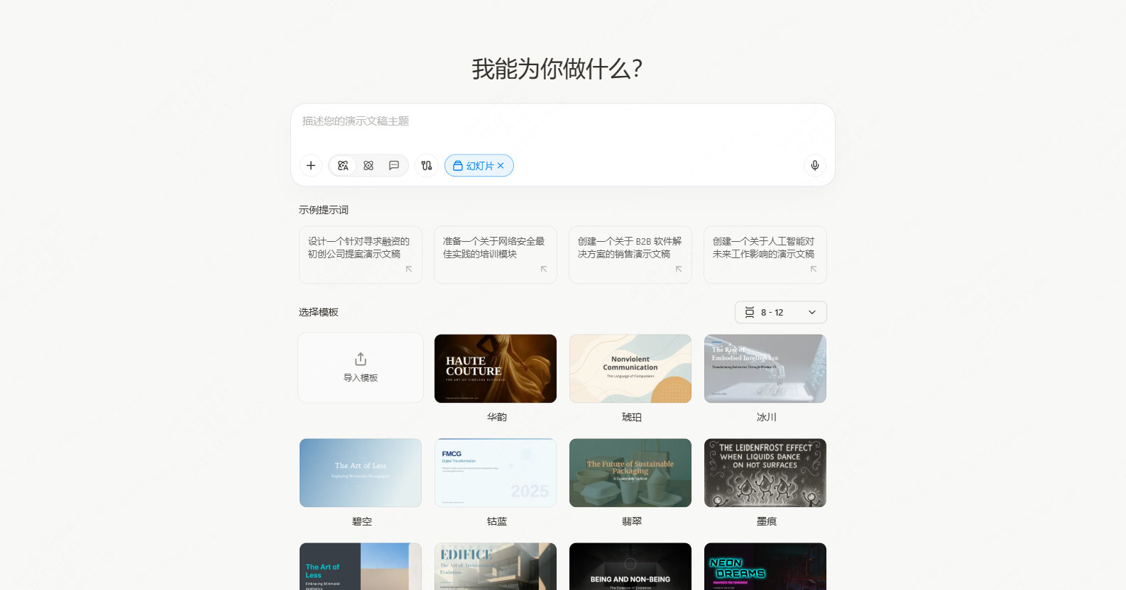 多轮对话交互:通过自然语言进行持续交互,不断细化和优化 PPT 内容和风格。