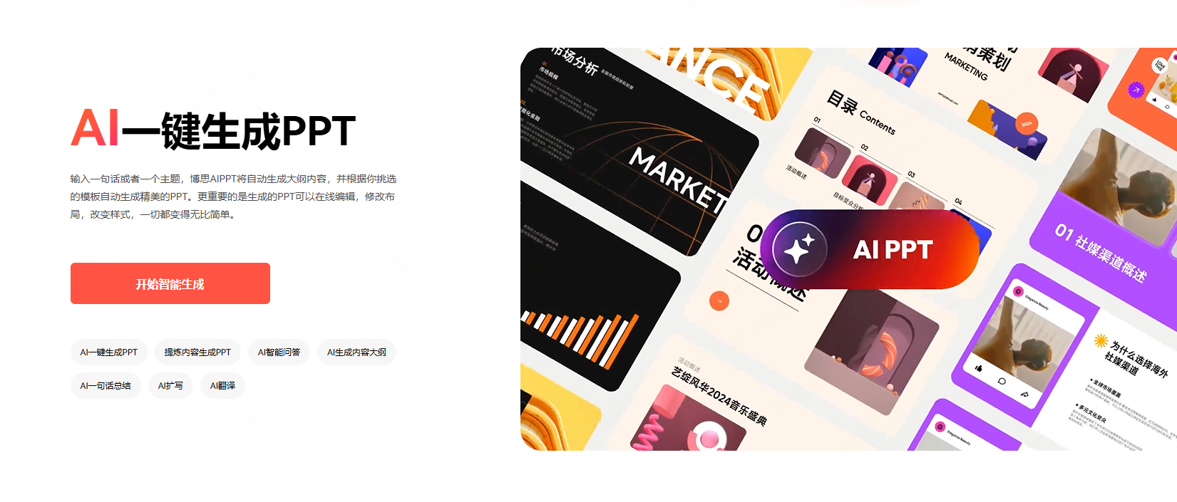 博思 AIPPT 是一款深度耕耘国内市场的 AI 演示文稿工具,它精准把握了中文语境下的表达习惯与审美偏好,致力于为用户提供从内容生成到在线协同的一站式解决方案,是为国人打造的 PPT 效率神器。