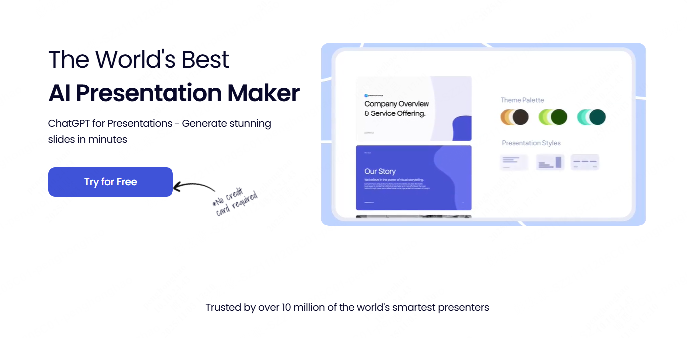 PresentationsAI 号称是“为演示而生的 ChatGPT”,它致力于将强大的语言模型能力与商业演示文稿的创作需求进行深度结合,是一款专为企业场景打造的效率引擎。
