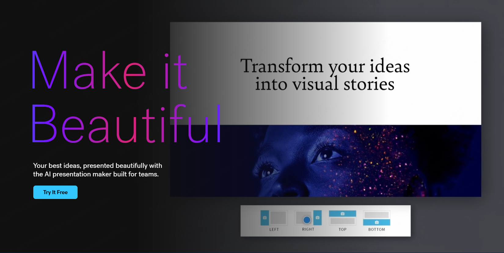 当你厌倦了千篇一律的 PPT 模板,希望让你的内容以一种更现代、更具吸引力的方式脱颖而出时,Gamma 是你的不二之选。它特别适合那些需要传递复杂信息或进行深度创意表达的场合,能够牢牢抓住观众的注意力,让信息传递变得高效而有趣。