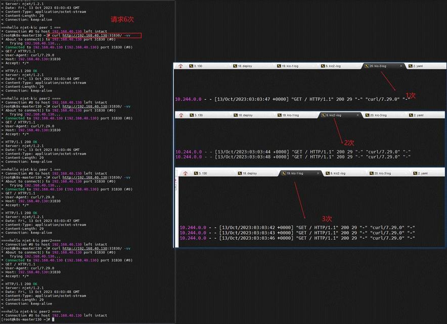 根据请求可以发现流量是可以到达所有正常状态的 kic-pod