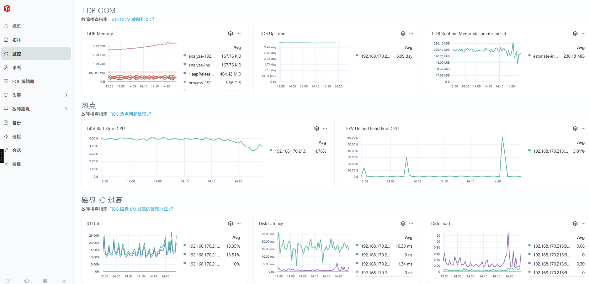 在 TEM 平台上监控功能,快速了解数据库服务器的整体状态,为服务器扩容或者故障排查提供极大的便利。