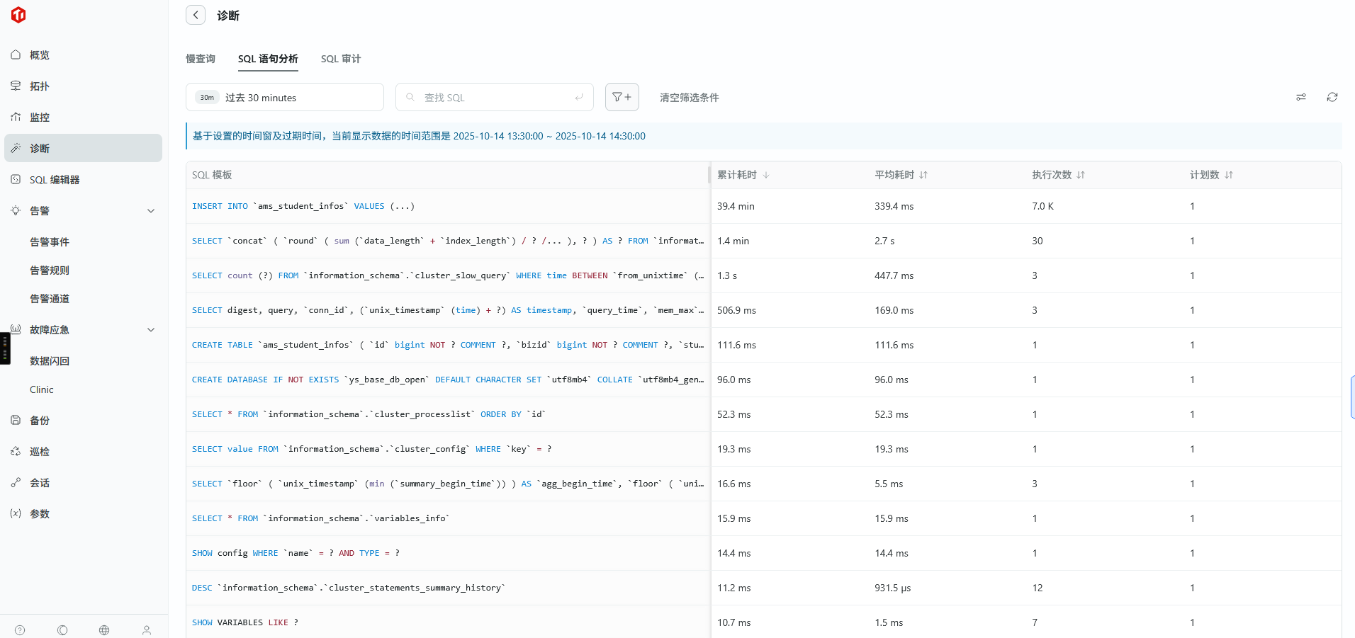 TEM 的 sql 诊断功能可以帮助研发分析 SQL 语句潜在的性能风险和隐患。