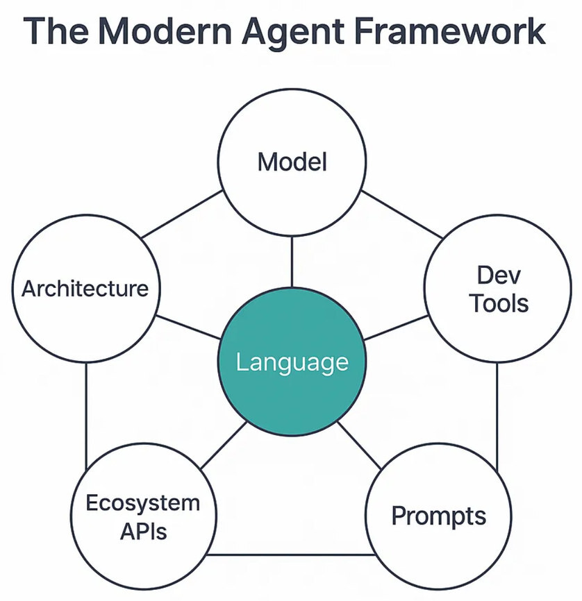 未来的框架不是你导入的代码库。它是对六个相互依赖层的掌握:你的语言、你的模型、你的开发工具、你的提示词、你的生态系统集成和你的架构。