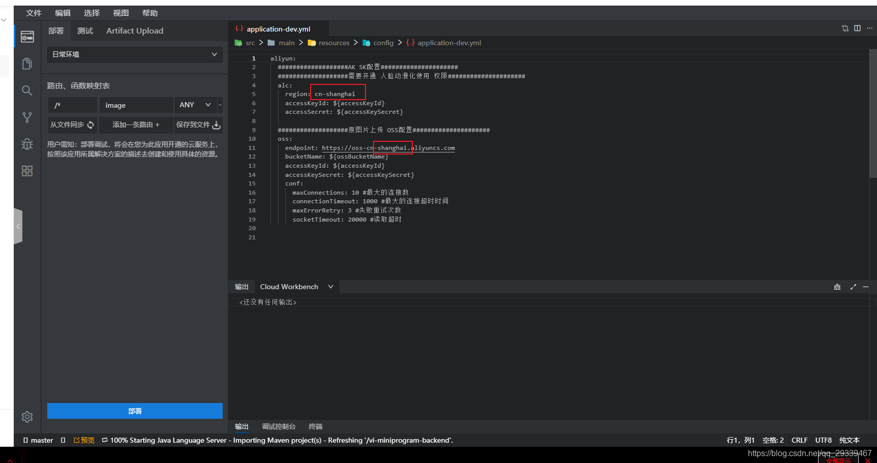 应用配置:由于我们要使用 OSS 和 阿里云视觉智能开放平台,这里要配置一下 OSS 和 ak、sk