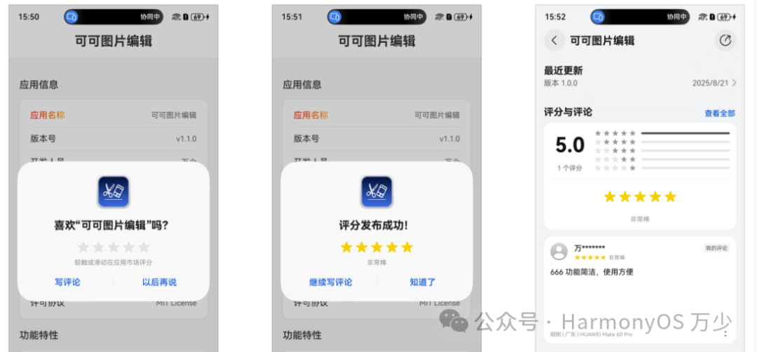 鸿蒙 6 新增的应用商店评论 API,可在应用内直接调起评论对话框。