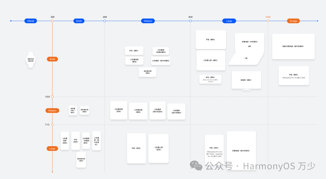 interface Breakpoint { name: string; size: number;}private breakpoints: Breakpoint[] = [ { name: 'xs', size: 0 }, // 超小屏(0-320vp) { name: 'sm', size: 320 }, // 小屏(320-600vp) { name: 'md', size: 600 }, // 中屏/平板(600-840vp) { name: 'lg', size: 840 } // 大屏/折叠屏(840vp+)];
