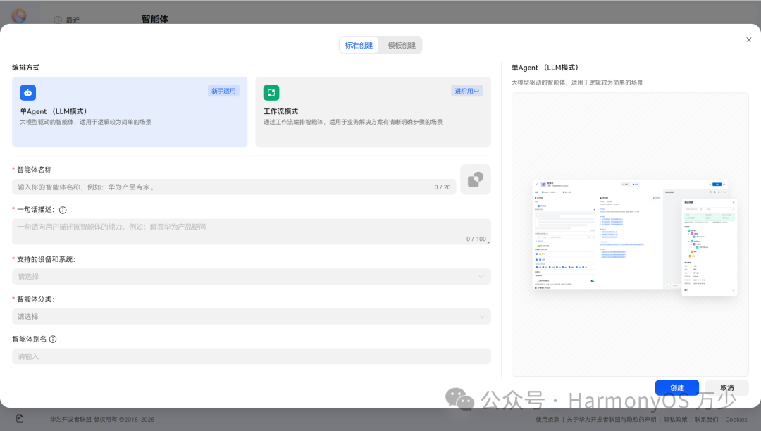 小艺智能体平台中创建智能体