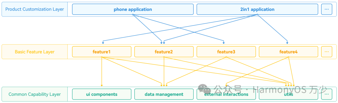 在应用中,就是设备专属的 UI 和配置:比如手机的简洁界面、平板的分屏布局、PC 的窗口模式。这一层编译成 入口包(Entry HAP),作为用户直接交互的界面。