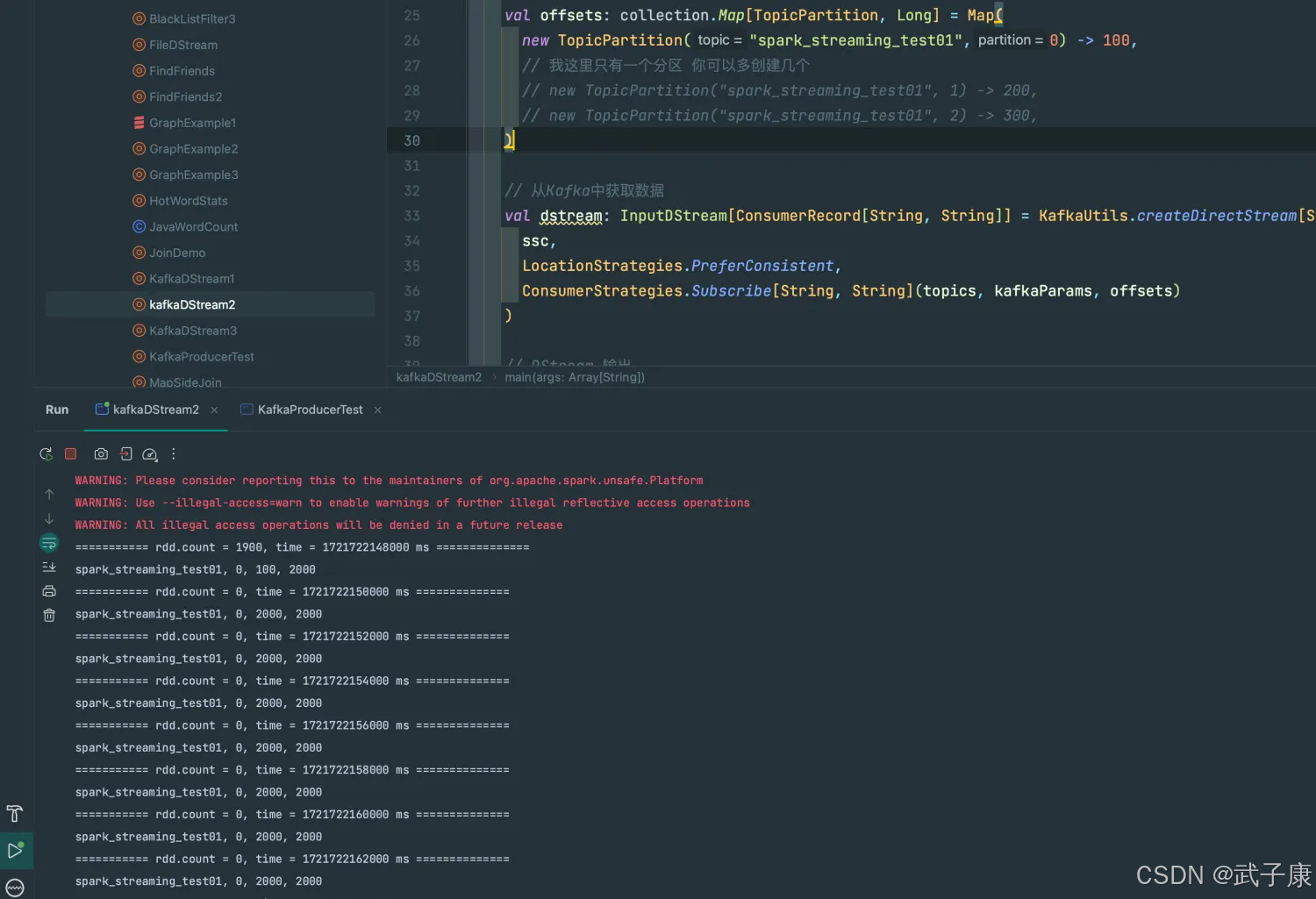 在 DStream 初始化的时候,需要指定每个分区的 Offsets 用于从指定位置读取数据