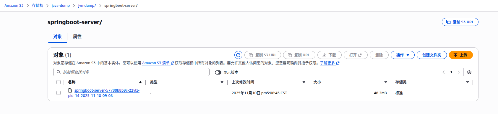 当前最佳实践是基于 Kubernetes 环境,通过观测云平台一键生成 JAVA dump 信息并上报至 AWS S3 。