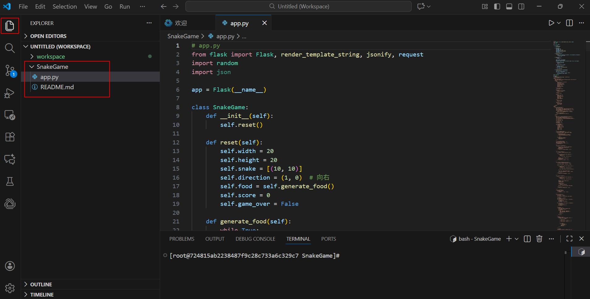 在容器中使用 VS Code 编写并运行应用代码,使用浏览器体验 Python 小游戏。