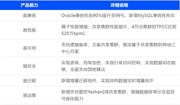 在 2024 国产数据库创新生态大会上,YashanDB 发布全新版本 V23.3。这一版本进一步强化了其“面向企业核心业务”的定位,致力于提供具备 Oracle 平滑迁移能力的通用数据库解决方案,全面支持国产化替代与核心系统上云。
