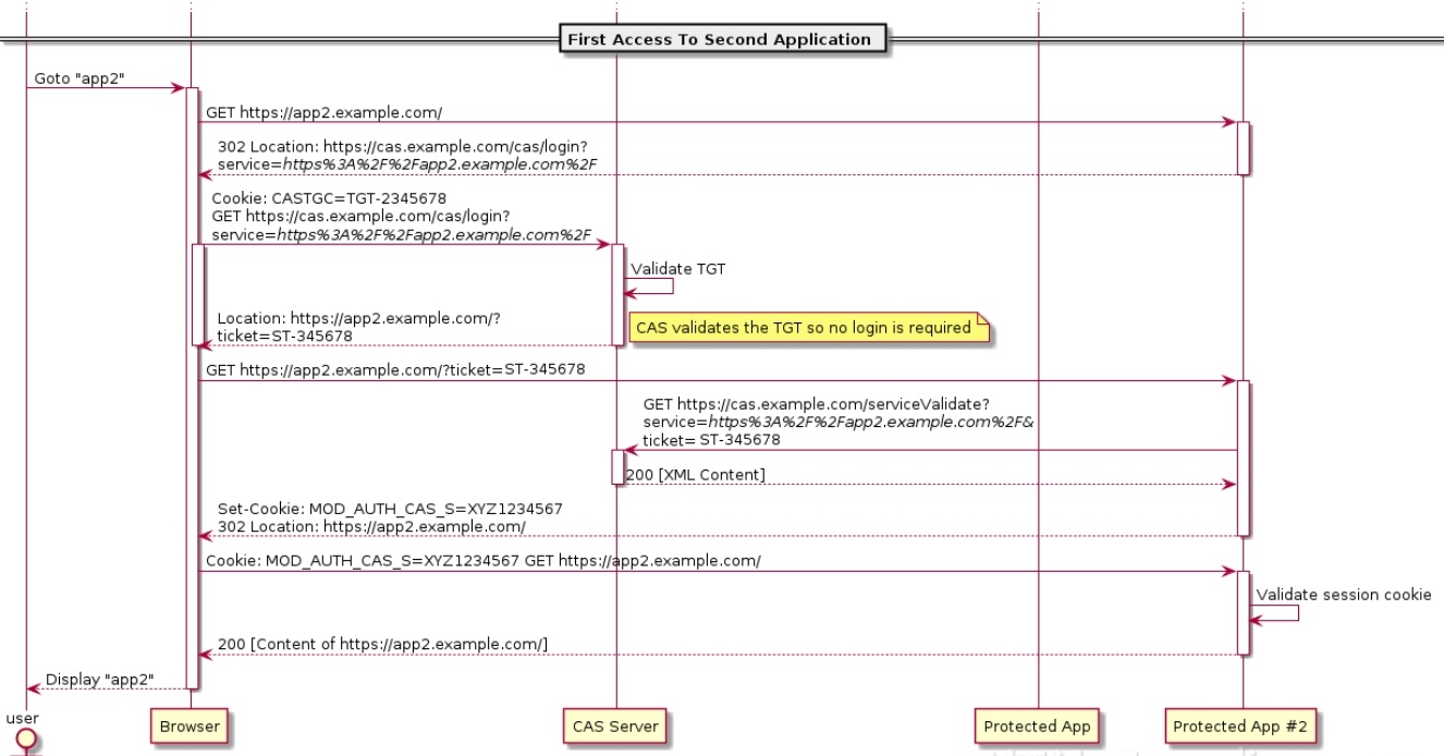 至此,跨域单点登录就完成了。以后我们再访问 app 系统时,app 就是登录的。接下来,我们再看看访问 app2 系统时的流程。