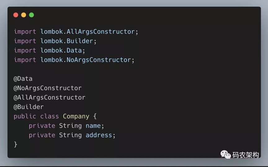 假设我们要发送的消息都是 Company 对象,这个 Company 的定义很简单,只有名称 name 和地址 address,示例代码参考如下