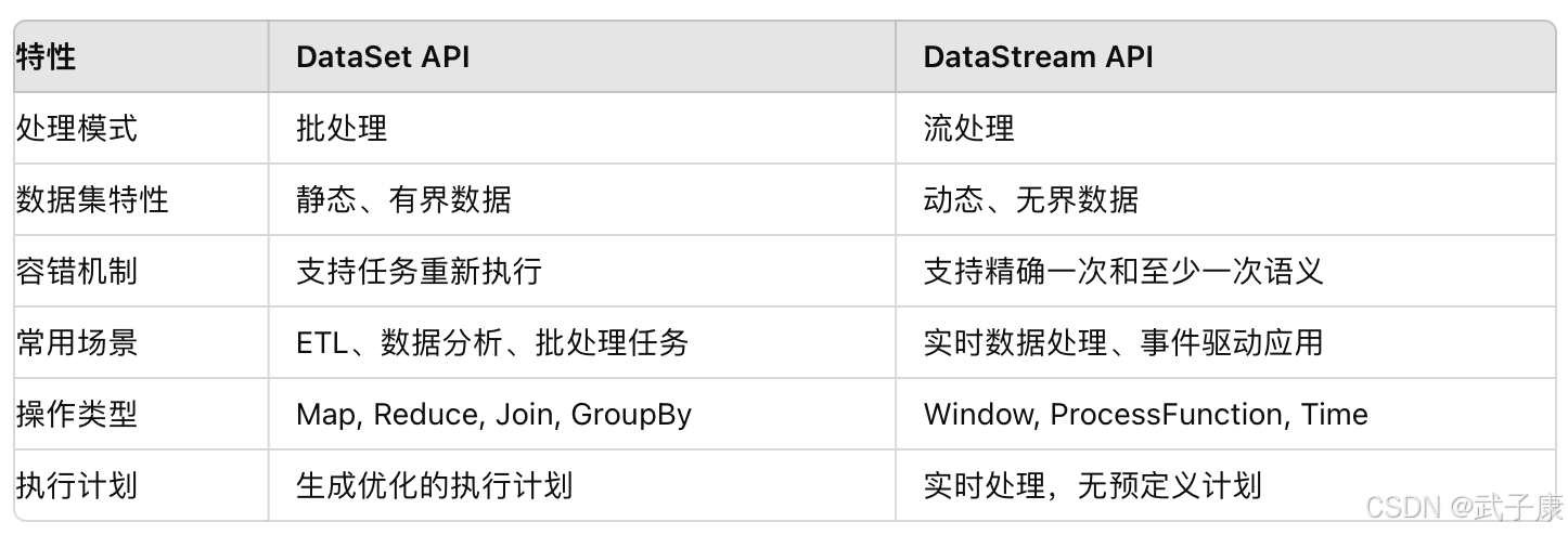 DataSet API 与 DataStream API 之间有一些重要的区别: