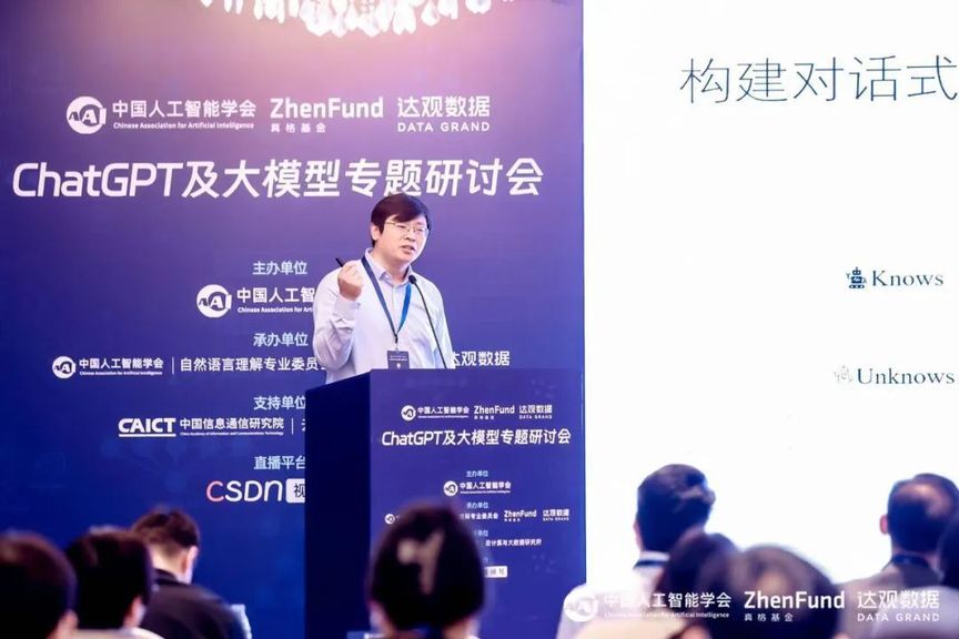 本文整理自 3 月 11 日,由中国人工智能学会主办,国内 AI 领军企业达观数据携手中国人工智能学会自然语言理解专委会、真格基金共同承办,中国信通院云计算与大数据研究所支持的 ChatGPT 及大模型专题研讨会。大会围绕 ChatGPT 和大规模语言模型的发展应用,聚集众多人工智能产研大咖,共同探讨前沿技术及产业未来,呈现了一场精彩的思想交流盛宴。研讨会通过五大平台实时线上转播,共吸引线下线上十余万听众共襄盛举。