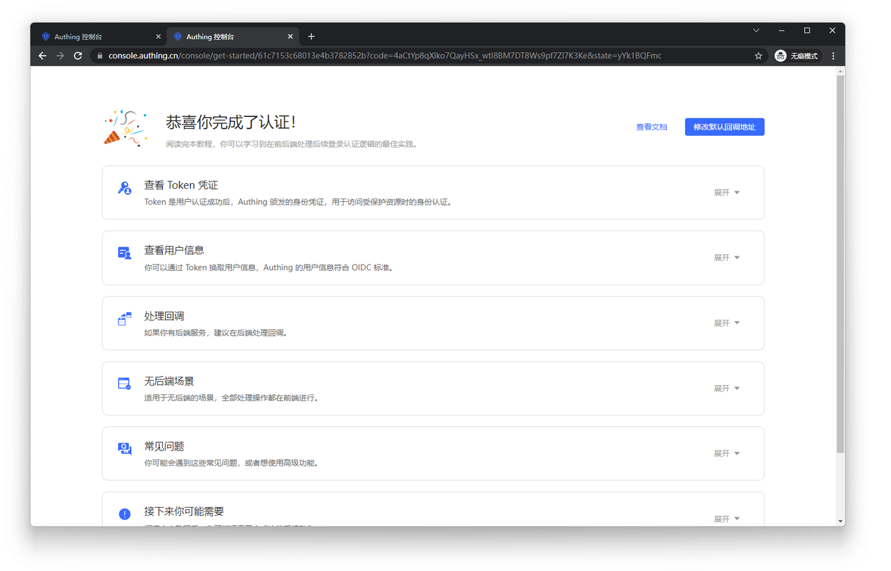 用户无需再次输入密码,直接进入了该用用的回调地址: