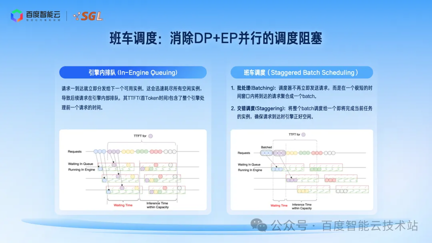 这种班车模式,通过在调度器层面进行短暂的聚合和智能的错峰分发,从根本上消除了请求在引擎内部的无效等待时间,实现了 TTFT 的显著降低。