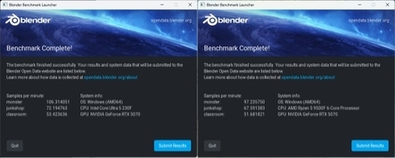 除此之外,我们还简单测试了英特尔酷睿 Ultra 5 230F 平台与 AMD 锐龙 5 9500F 平台在生产力方面的表现——可以看到前者无论是在面向生产力综合能力测试的 CrossMark 还是面向模型渲染的 Blender Open data 中,均有一定的优势。要知道英特尔酷睿 Ultra 5 230F 平台还有 NPU 可以利用,其与顶级处理器酷睿 Ultra 9 285K 拥有一致的完整 NPU 单元,能够帮助用户更好地应对 AI 应用。