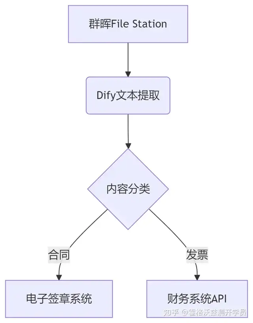这个工作流会自动从群晖 NAS 中获取文档,进行分类,并推送到相应的处理系统。