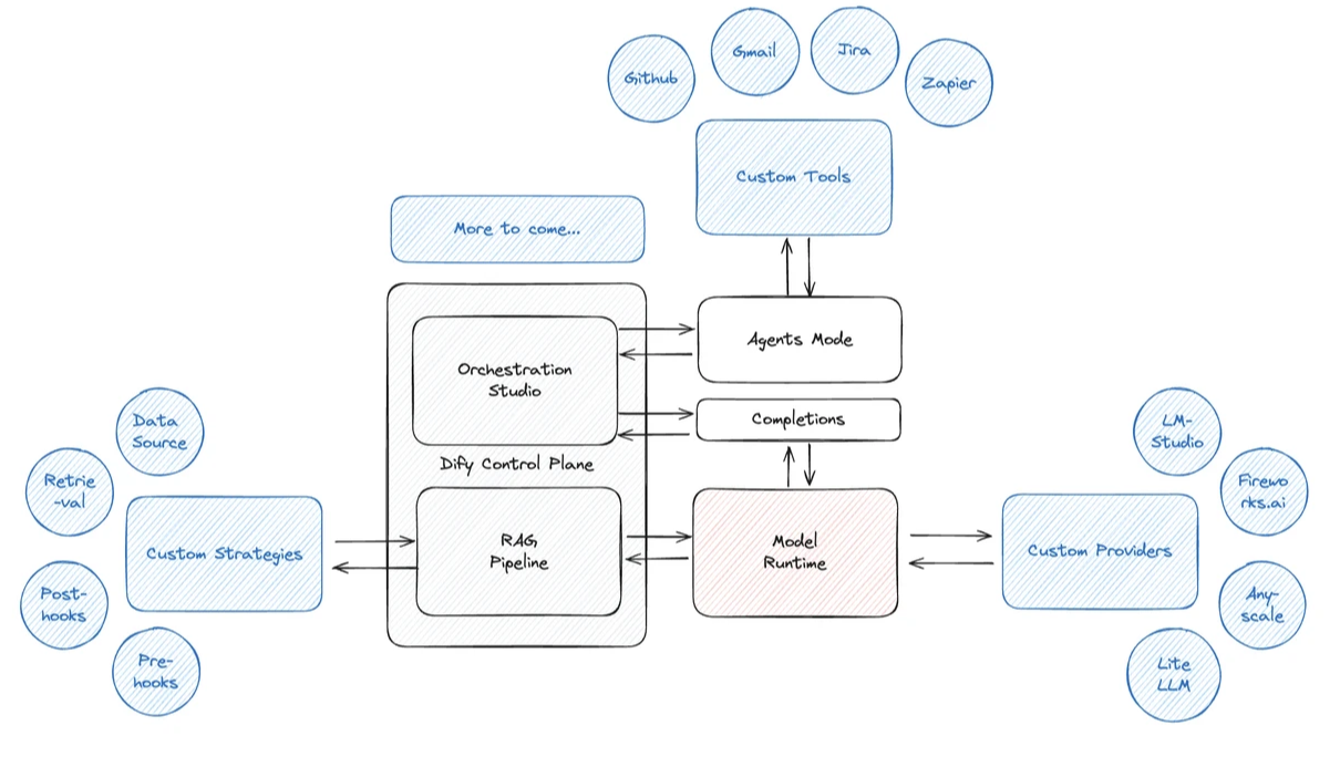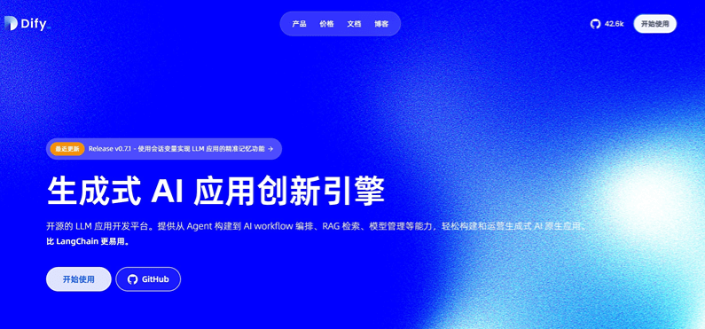 产品特色:Dify 采用模块化设计,支持多种大模型,内置文档解析、向量化和语义检索能力。它提供图形化界面与插件热部署,支持快速集成。