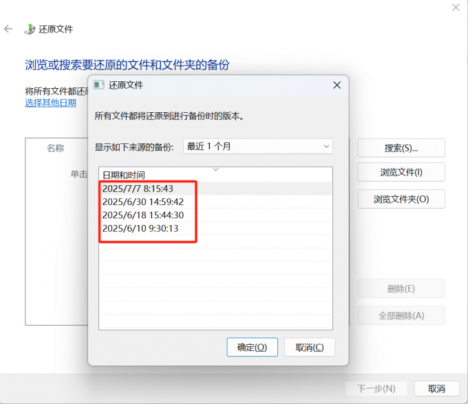对于 Windows 10/11 用户,如果你之前开启了“文件历史记录”功能,并且照片所在的文件夹被纳入了备份范围,那么可以尝试从历史记录中恢复。