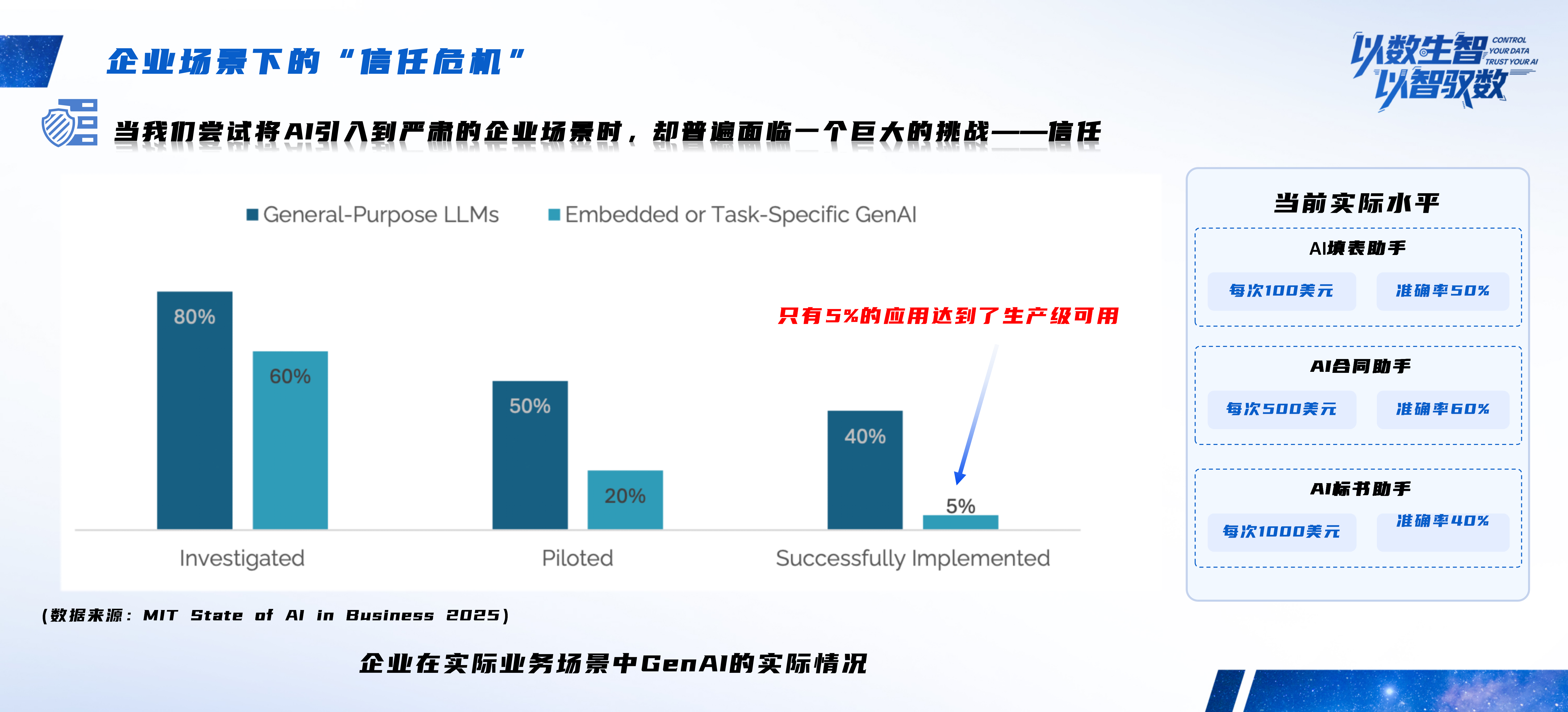 MIT 的一份报告显示,企业在应用“任务关键型 AI”(Mission-critical AI)时,最终能产生价值的成功率仅有 5%。