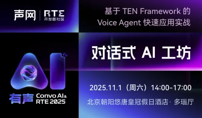 2025 年 10 月 31 日~11 月 1 日,由声网和 RTE 开发者社区联合主办的 Convo AI&RTE2025「实时互联网大会暨对话式 AI 论坛」 将在北京·悠唐皇冠假日酒店正式开启!
