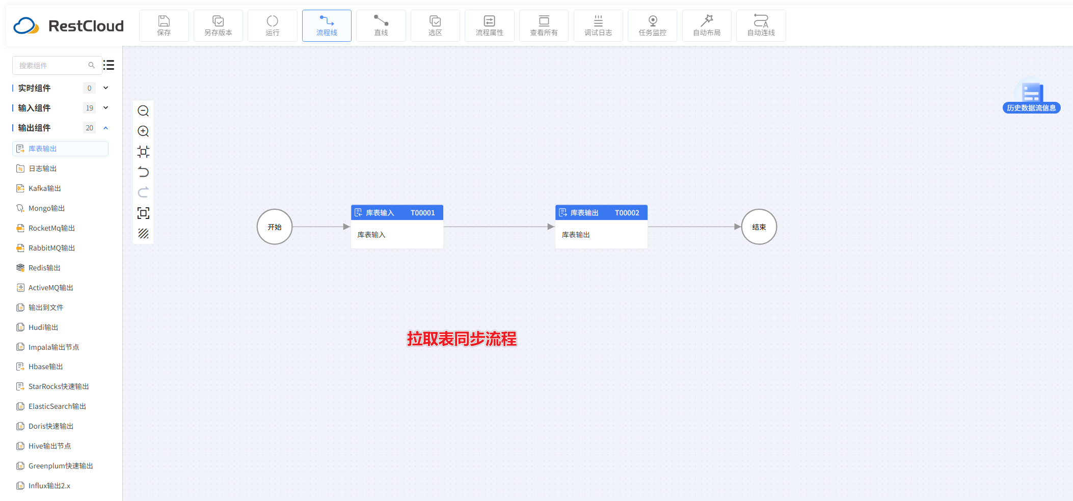 到这里,ETLCloud 已经打通了源端和目标端的数据库配置,接下来配置数据同步流程。