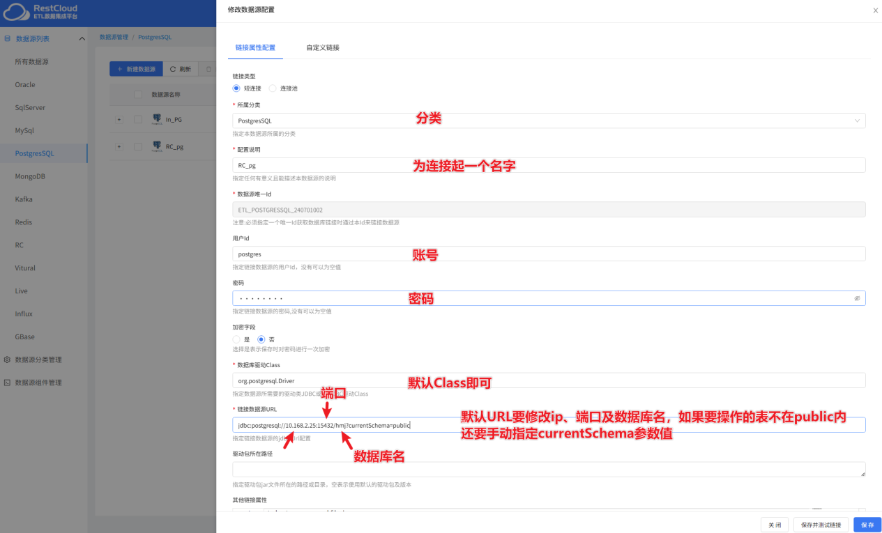 PostgreSql 数据源的具体配置: