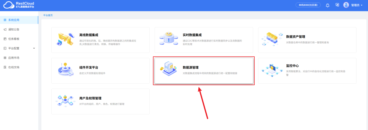 来到系统首页,进入数据源管理模块。
