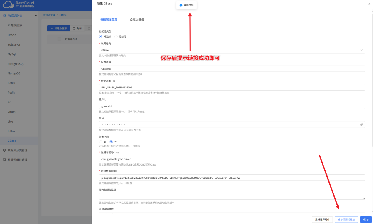 点击保存并测试按钮提示连接成功即可。