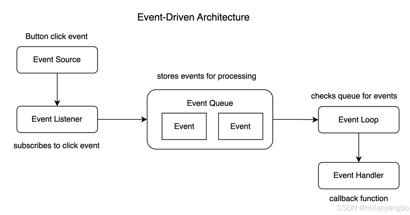 事件驱动(Event Driven)是一种核心的编程范式,其根本特征是控制反转(Inversion of Control,IoC)。在这种模型中,程序的执行流不再由代码的顺序调用决定,而是由一系列异步发生的事件来驱动。应用程序的角色从主动轮询或等待,转变为被动地对事件做出响应,这构成了现代高性能系统的基础。一个完整的事件驱动架构由四个基本部分组成,它们协同工作,构成了高效的事件处理流程。1)事件源(Event Source):事件的产生者。在网络编程中,最典型的事件源就是操作系统内核,它负责监视网络连接、文件句柄等资源的状态变化。2)事件(Event):对状态变化的封装。例如,一个数据包到达网卡,内核会生成一个“读就绪”事件;一个 TCP 连接请求被接受,会生成一个“连接就绪”事件。每个事件都包含了足够的信息(如关联的文件描述符)以供后续处理。3)事件循环(Event Loop):整个范式的引擎。它是一个持续运行的循环,其唯一职责就是向事件源查询是否有新事件发生。一旦获取到事件,它并不会自己处理,而是将事件分发给预先注册的处理器。基于 epoll 的 while (true) { epoll_wait(...); }结构就是最经典的事件循环实现。4)事件处理器(Event Handler):预先定义的、用于处理特定事件的逻辑代码。这通常是一个函数或一个对象的方法。当事件循环将事件分发过来时,相应的处理器被调用,执行具体的业务逻辑,如读取数据、发送响应或关闭连接。