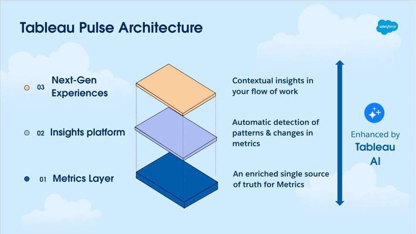 Tableau Pulse 的三层架构是现代智能 BI 系统的一个典型范例,强调了指标层、洞察平台和用户体验的整合