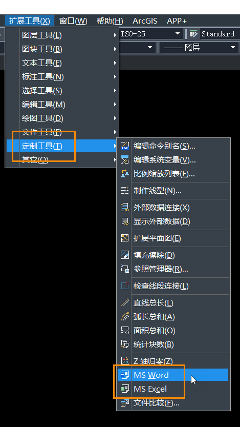我们点击菜单【扩展工具-定制工具-MS WORD/MS EXCEL】(【WORD/EXCEL】命令),即可开启相应软件。