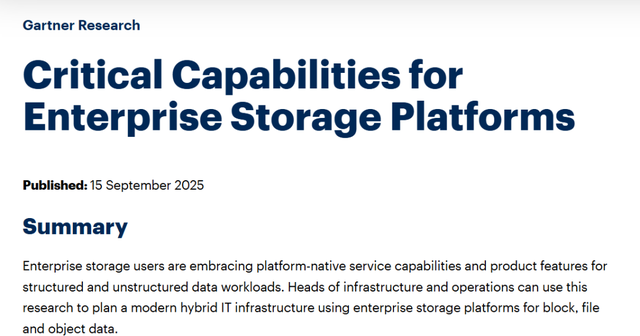 AI 时代,存力先行。全球企业此刻正普遍希望找到最适合自身 AI 战略发展的存储基础设施。在这样的关键期待中,Gartner 又一次发挥了其在 IT 产业中一如既往的黄金标尺作用。