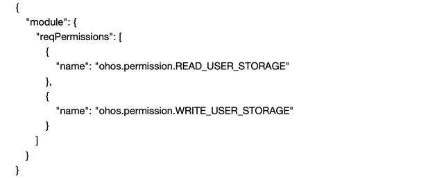 应用在访问系统资源或用户数据时,需要在 Module 配置中声明所需权限。配置示例: