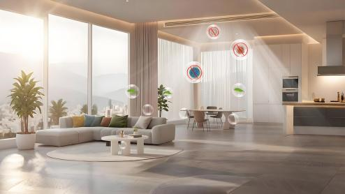 在环境健康管理方面,狄耐克以米家智慧屏为核心,构建了主动式空气管理方案。该屏可实时监测室内 PM2.5、甲醛、二氧化碳浓度及温湿度等关键指标,并根据环境变化自动联动开启新风、净化或除湿模式,确保室内空气始终处于健康状态,为用户提供全天候的呼吸守护。
