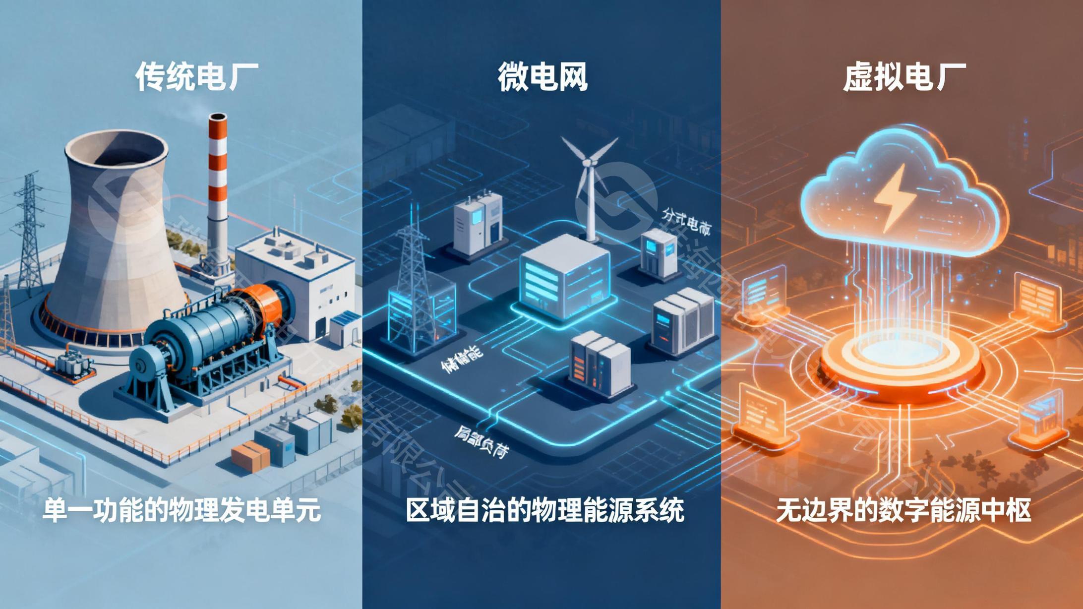 虚拟电厂 VS 传统电厂 VS 微电网的差异:3 大维度拆解,避免概念混淆