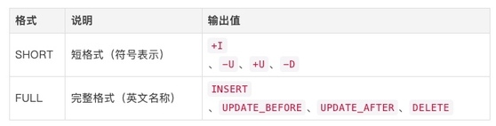 指定 RowKind 字段值的输出格式。