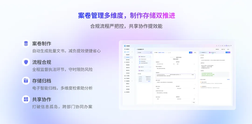 其内置的字段校验逻辑能够自动识别并提示不完整或不符合规范的内容,确保案件基本信息、适用法律条文、证据材料等关键要素准确、完整,从源头上保障了案卷的制作质量。