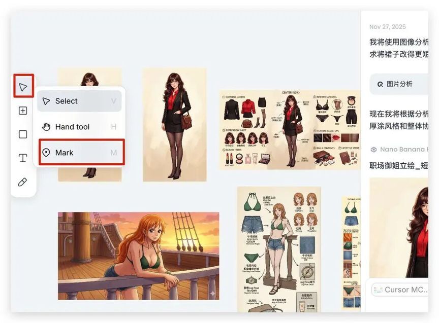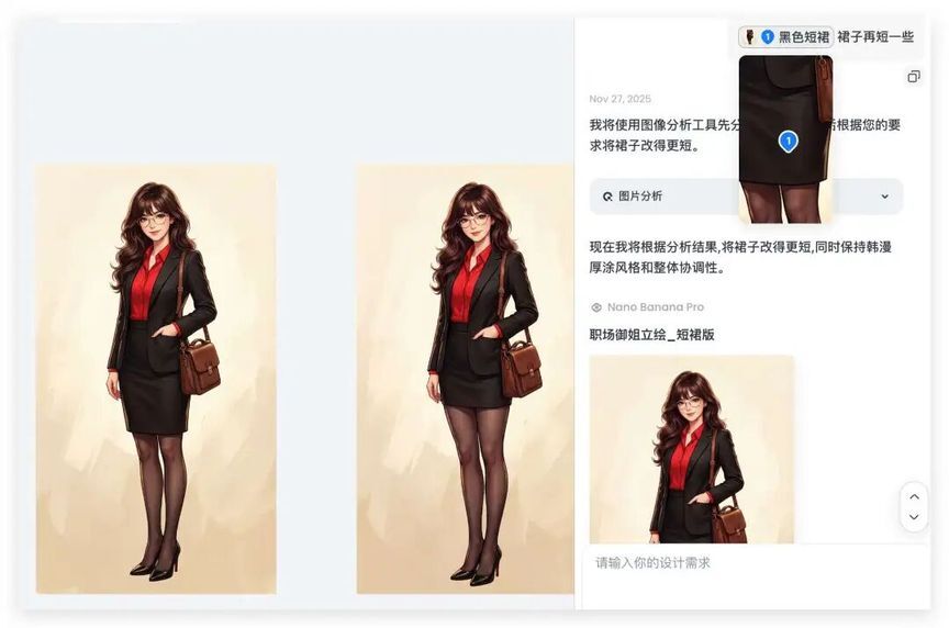 于是我在 Lovart 用 Touch edit 标记我要修改的裙子,直接让它生成更短些的。