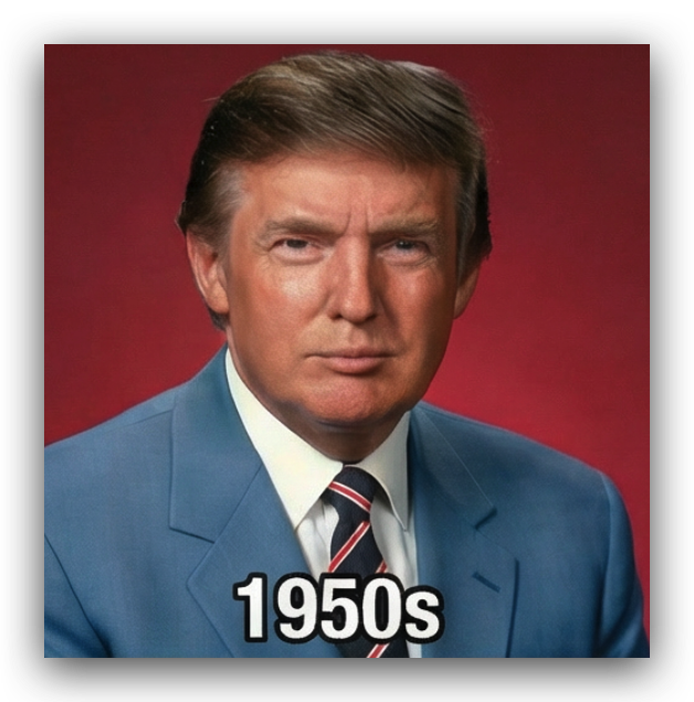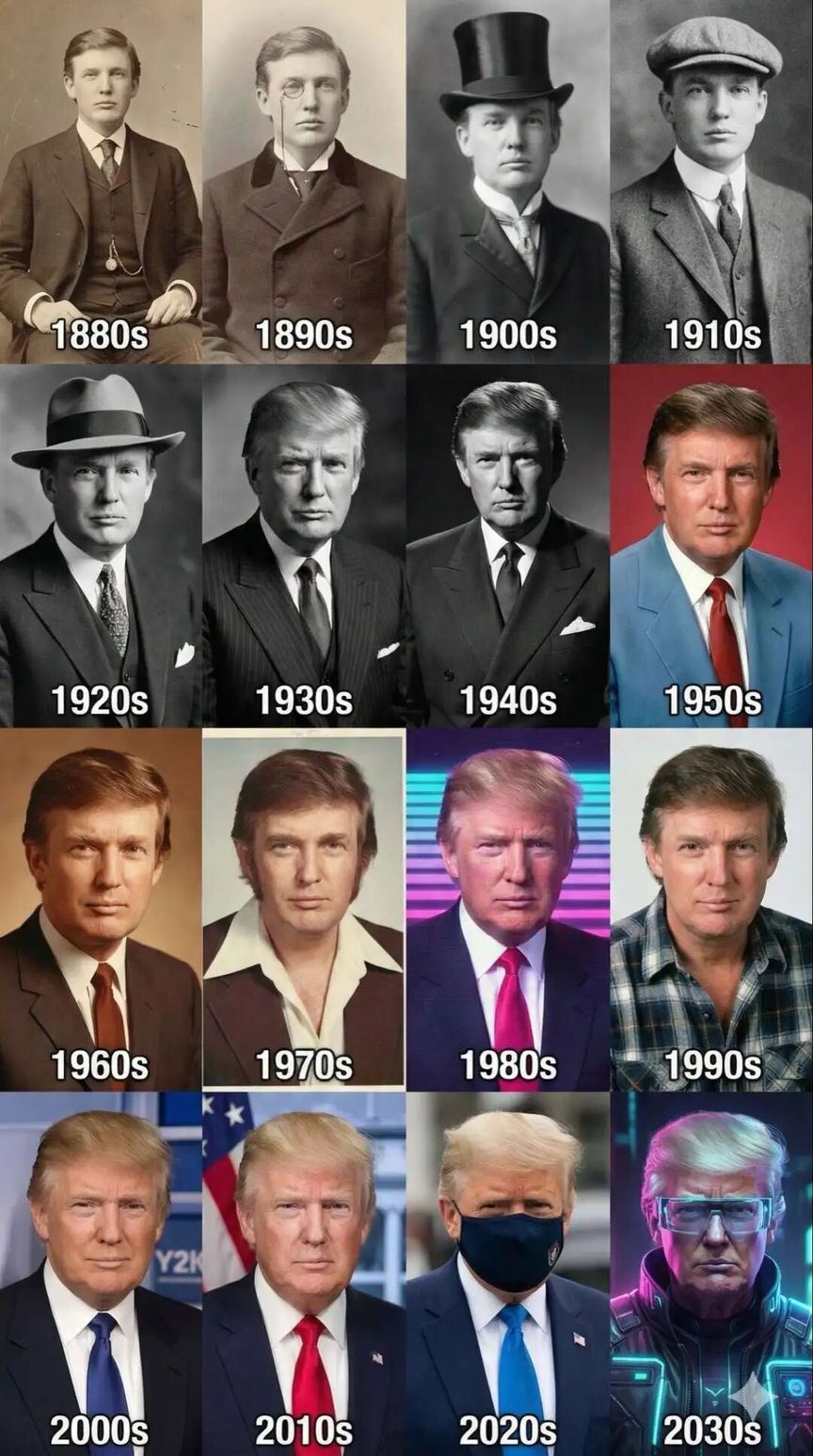 来一个我设计的提示词吧,用来展现同一个人物在不同年代风格。