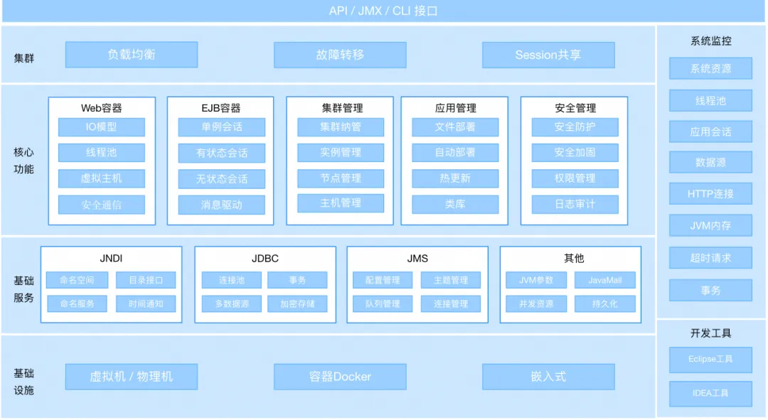 云原生容器化支持: 支持 Docker、Kubernetes 等主流容器技术,支持 JAR、WAR、EAR 等传统应用包直接部署至容器环境。集成自动伸缩机制,可根据业务负载动态调整实例数量与资源配额,实现资源的智能调度与成本优化,助力企业实现敏捷交付与弹性扩展。