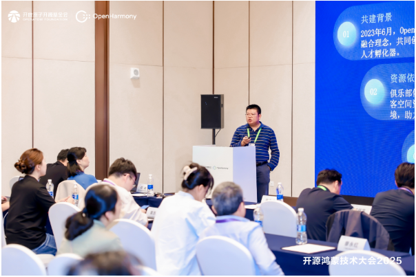 开源鸿蒙项目群技术指导委员会主席陈海波在分论坛上发表致辞。他表示,开源鸿蒙生态的持续发展离不开教育体系的有力支撑和高质量人才的不断涌现。社区高度重视教育生态建设,通过成立开源鸿蒙教育委员会(筹)、推动开源鸿蒙技术俱乐部进高校、支持课程资源共建与师资培训等多重举措,积极构建产学研用协同育人体系。期待更多高校、企业及教师加入开源鸿蒙教育生态共建,共同培养面向未来的操作系统领域创新人才,为数字中国建设提供坚实人才保障。