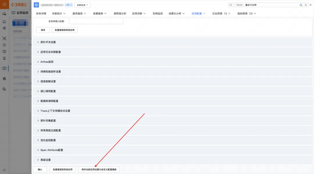 进入应用的配置页面将当前应用的配置保存为自定义配置模板。