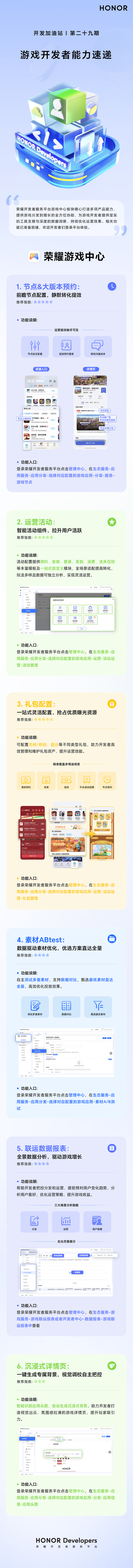 本期推出荣耀开发者服务平台游戏板块功能亮点抢先看——